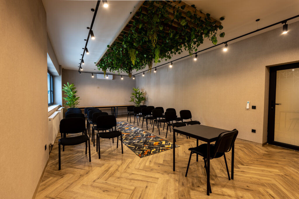 Téglalap alakú oktató teremAlapterülete 44 m2Elrendezéstől függően 20-40 fő befogadására alkalmas