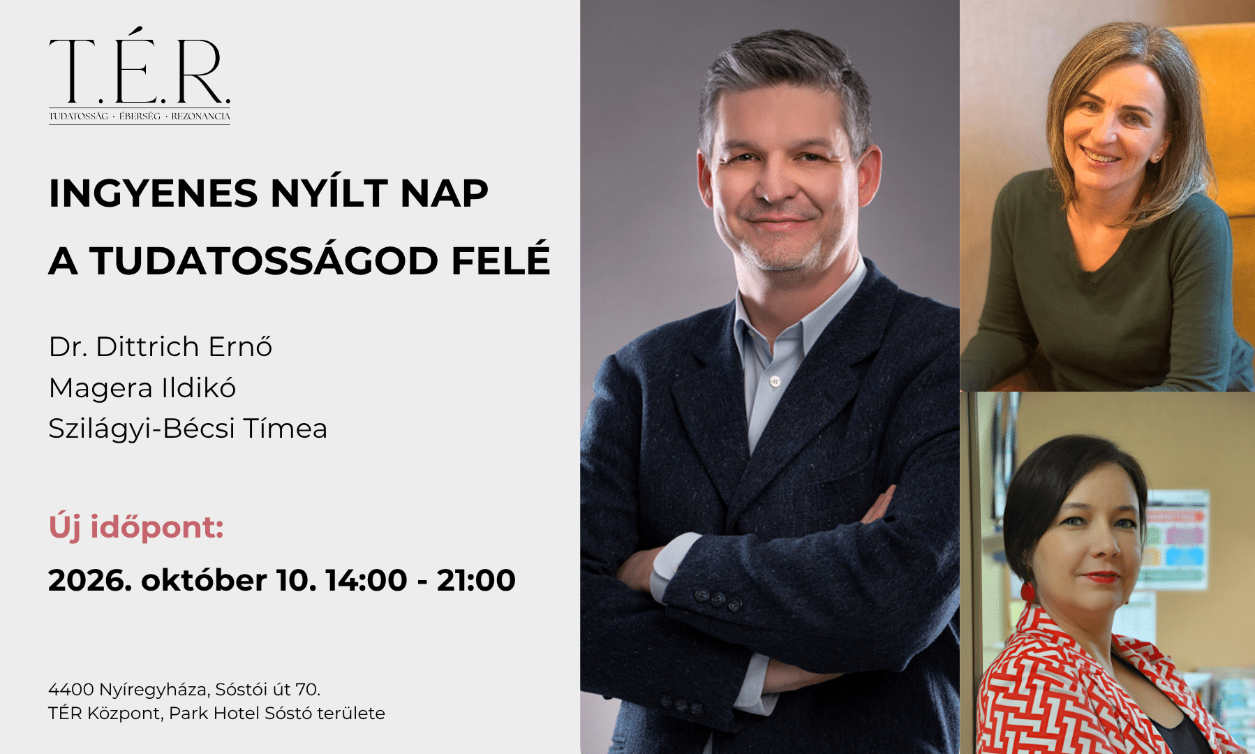 Időpont: 2026. október 10. 14:00 – 21:00 Helyszín: TÉR Központ (4400 Nyíregyháza, Sóstói út 70.) A részvétel ingyenes, de regisztrációhoz kötött. A korábban regisztráltak jelentkezése továbbra is érvényes. Amennyiben mégsem […]